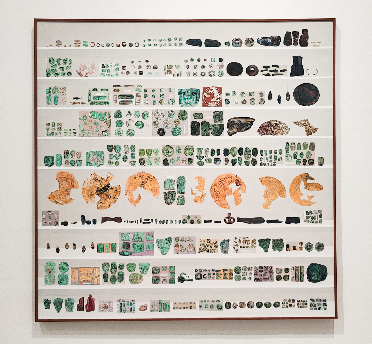 The exhibit text claims “Her work reflects on the way in which objects are inserted into museums and heritage institutions and subjected to cataloging and conservation systems.” I would argue it is a rather literal reflection, in some ways it is just a replication for the gallery audience, as opposed to the museum one. And by audience, a very particular and niche foray of interdisciplinary exploration that is less in conversation with a general population’s relationship to their heritage.