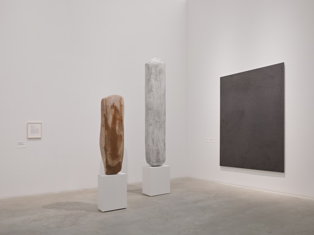 La instalación de piedras, aerolitos o monolitos en el espacio inaugural de una exposición es una estrategia que tiene antecedentes notables, como la sala Brain [Cerebro] en la Documenta 13, donde una obra de Giuseppe Penone daba la bienvenida a la rotonda del Museo Fridericanum. En Essere Fiume [Ser un Río] (1981), Penone replica una piedra de río a partir de técnicas tradicionales de escultura y la presenta junto a su referente original. El gesto es, quizás, un comentario sobre la futilidad de la imitación artística de la naturaleza en su forma más esencial, o sobre cómo el arte encuentra placer –e incluso sustento– en esta suerte de ejercicio de la improductividad. La piedra es un testimonio de destrucción, ya sea espacial (un escombro), o cultural (un objeto sustraído de su contexto) que inaugura una serie de acciones: la restauración patrimonial, el movimiento social y legislativo de la restitución, el análisis científico, la conservación museal, el gesto artístico, el plano urbanístico (que crece alrededor del patrimonio), entre otros.