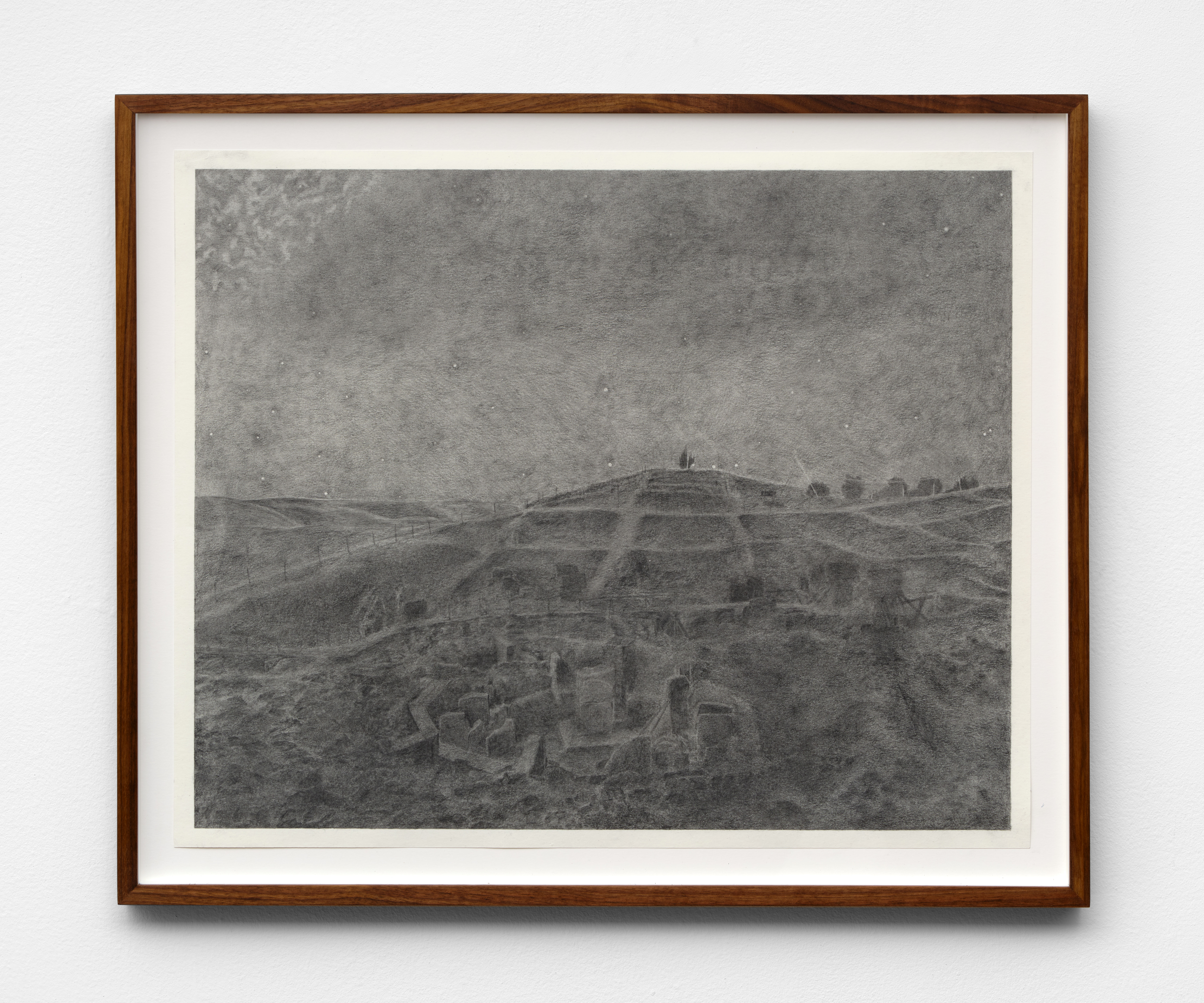 La instalación de piedras, aerolitos o monolitos en el espacio inaugural de una exposición es una estrategia que tiene antecedentes notables, como la sala Brain [Cerebro] en la Documenta 13, donde una obra de Giuseppe Penone daba la bienvenida a la rotonda del Museo Fridericanum. En Essere Fiume [Ser un Río] (1981), Penone replica una piedra de río a partir de técnicas tradicionales de escultura y la presenta junto a su referente original. El gesto es, quizás, un comentario sobre la futilidad de la imitación artística de la naturaleza en su forma más esencial, o sobre cómo el arte encuentra placer –e incluso sustento– en esta suerte de ejercicio de la improductividad. La piedra es un testimonio de destrucción, ya sea espacial (un escombro), o cultural (un objeto sustraído de su contexto) que inaugura una serie de acciones: la restauración patrimonial, el movimiento social y legislativo de la restitución, el análisis científico, la conservación museal, el gesto artístico, el plano urbanístico (que crece alrededor del patrimonio), entre otros.