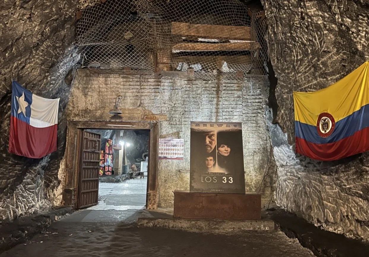 The mine in Nemocón ceased operations in 1968 and became a tourist site, featuring a museum, a chapel, and a small collection of scenography objects from the film Los 33, which was shot on location. It narrates the story of the entrapment of a group of miners in Copiapó, Chile, in the Atacama desert, but with the compelling aesthetic flair of European actors like Antonio Banderas and Juliette Binoche. The connection between distant Andean geographies will proliferate further in the following paragraphs.