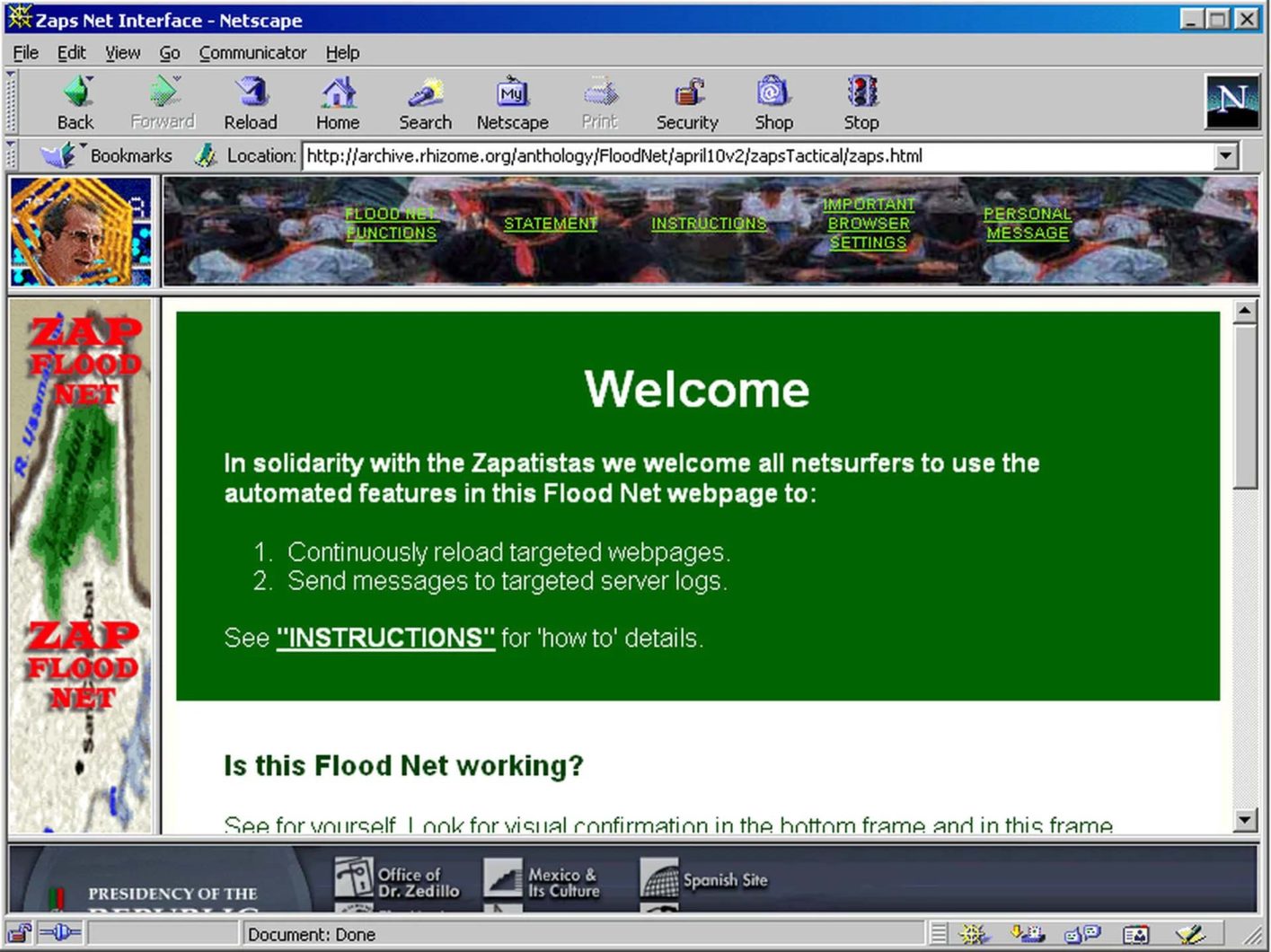 For example, Electronic Disturbance Theater (EDT) created FloodNet, an applet to “occupy” the digital space of the Mexican government in a peaceful protest that halted its public communication infrastructure. This initiative came as a response to the violent attacks by the government on Zapatista ranks and sympathisers between 1994 and 1998. EDT’s work has a strong emphasis on queerness, transrealism, and decolonial queer politics, in this way sharing a struggle for self-determination with the Zapatistas. Analogously, printmaker and Black Panther Minister of Culture Emory Douglas participated in several artistic and political actions in solidarity with Palestine, whose struggle he saw as associated with the experience of oppression of Black peoples in the US and the Western world in general.