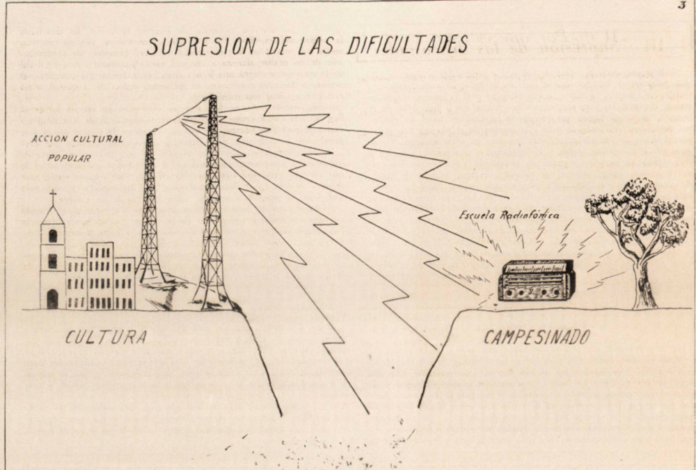 In 1948, General Electric donated two radio receivers and two antennas to Father Jose Joaquin Salcedo Guarin, a recently ordained Catholic priest who started what would become the first rural radio schools in Colombia the previous year. This experiment led to the establishment of Radio Sutatenza, the first large-scale rural educational radio network in the country. It began with a coverage radius of 100 km in a broken landscape, and by 1968, its reach went beyond national borders, serving areas of all neighboring countries. By the time it disappeared, millions of people in farming communities had received literacy, technical, and vocational training through its shortwave signal. I remember the tune of their radio commercials, as part of the soundscape of my childhood, when we spent time at my grandfather’s hometown. Its last transmission took place in 1994, and Acción Cultural Popular (ACPO), the organization born out of this remarkable pedagogical experiment, found other ways to further serve and stay relevant among the farming communities.